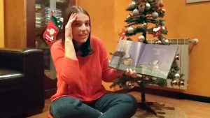 Ana García Novoa, voluntaria da Biblioteca de Verín, na contada realizada online en Nadal de 2021 por mor da covid